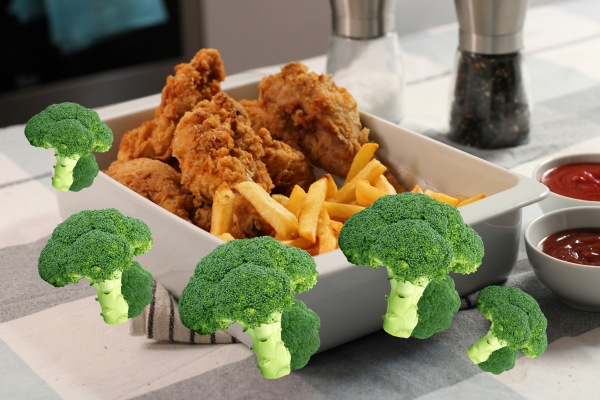 驚いたのは、フライドチキンを食べてしまった日でも先に、または一緒にブロッコリーとマッシュルームを食べると、なんと、