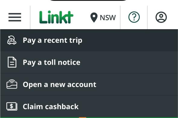 LinktのメニューからPay Toll Noticeを選択し、受け取った番号を入力し、カード決済が可能です。Pay a toll noticeからできます。車のナンバープレートを入れれば自分の車が利用したToll 料金がわかりますので、サイトから支払えます。